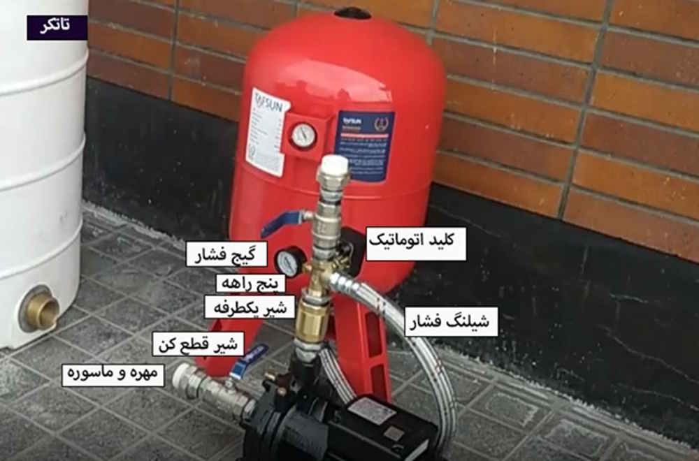 طبق استاندارد، تغذیه پمپ تحت فشار حتماً باید از تانکر ذخیره آب باشد. چون مجاز نیستیم که پمپ آب را به کنتور آب شهری وصل کنیم. تانکر که جزو مهمترین اتصالات مورد نیاز برای نصب پمپ آب است باید متناسب با ظرفیت و توان پمپ انتخاب شود. همچنین باید فلوتر را مناسب مخزن انتخاب کنید، مثلاً برای مخزن ۲۰۰۰ لیتری یک فلوتر ۱ اینچ کافی است. اگر تعداد واحد ساختمان کم باشد (مثلاً ۴ واحد)، احتمالاً فلوتر ½ یا ¾ هم جوابگو باشد. ولی وقتی که تعداد مصرفکننده زیاد و پمپ شما نسبتاً قوی است، اندازه فلوتر باید بالاتر باشد تا پُر کردن منبع را سریعتر انجام دهد. به بیانی دیگر متناسب با تخیلیه آب، سرعت پُر شدن مخزن هم باید بالا باشد.
