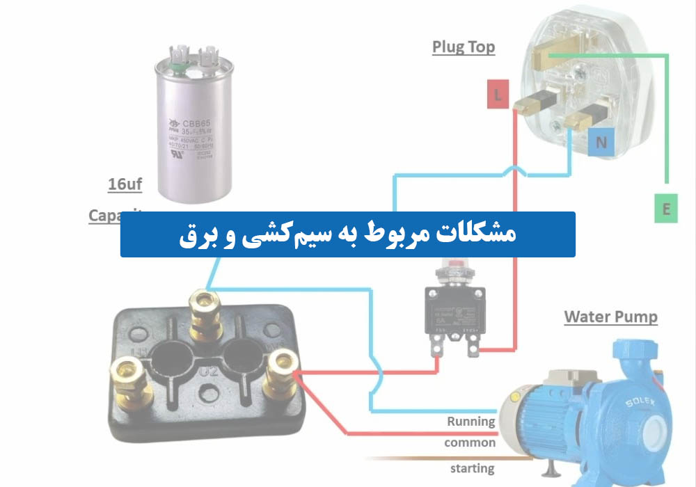 در این بخش به بررسی برخی از مشکلات مربوط به سیمکشی و برق که میتوانند علت یکسره روشن شدن پمپ آب باشند، اشاره شده است: