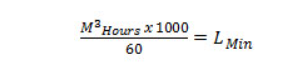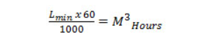 - برای محاسبه آبدهی پمپ برحسب لیتر بر دقیقه باید از فرمول زیر استفاده کرد: